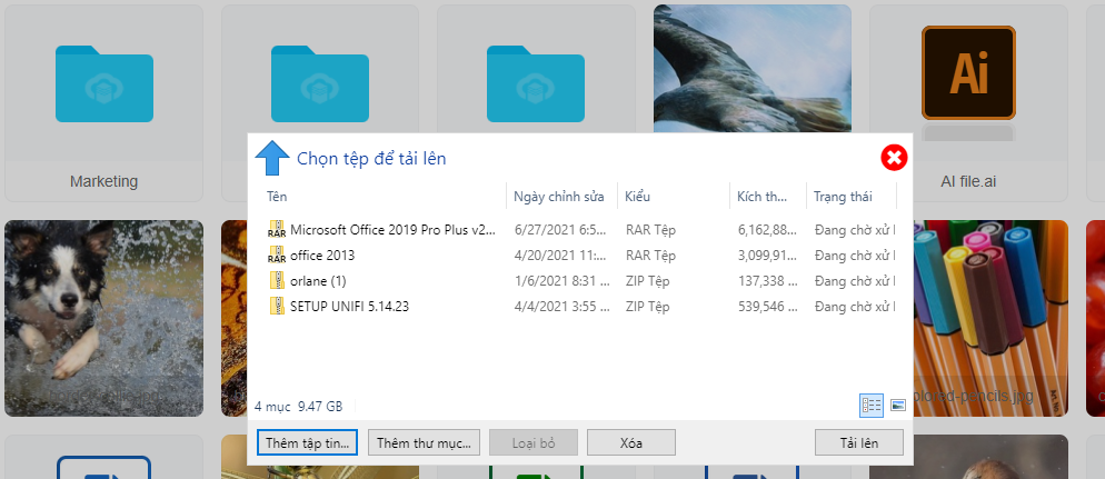 Tải lên nâng cao Tải lên nhiều tệp hoặc thậm chí toàn bộ thư mục cùng một lúc. Tải lên bằng cách kéo và thả trực tiếp từ máy tính của bạn. Tải lên các tệp có kích thước không giới hạn (ví dụ: tệp lớn 10 GB). |